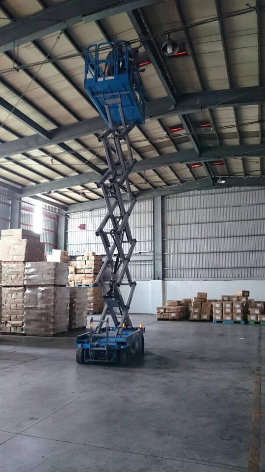 GENIE GS3246 10米剪刀式高空車和AICHI SP210 21米輪胎式高空作業車支援岡山漢翔廠區擴建工程